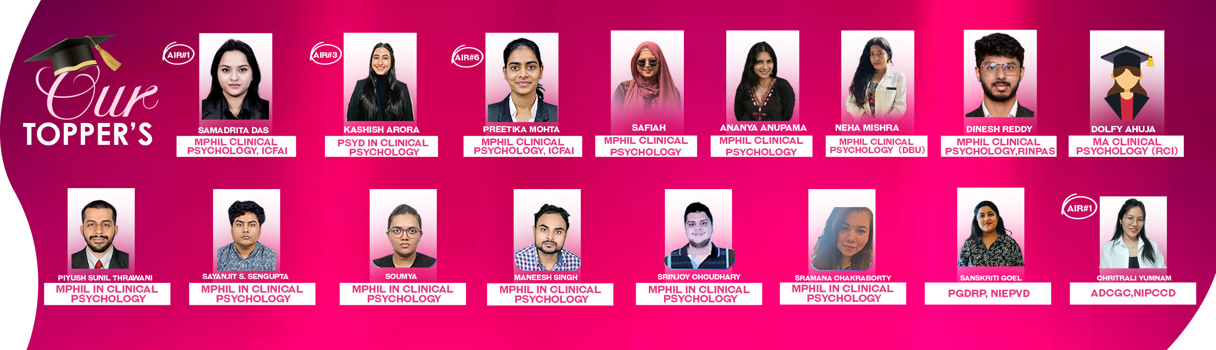There is also the 1-year Post Graduate Diploma in Clinical Psychology (PGDCP), an RCI-approved course to become an Associate Clinical Psychologist.