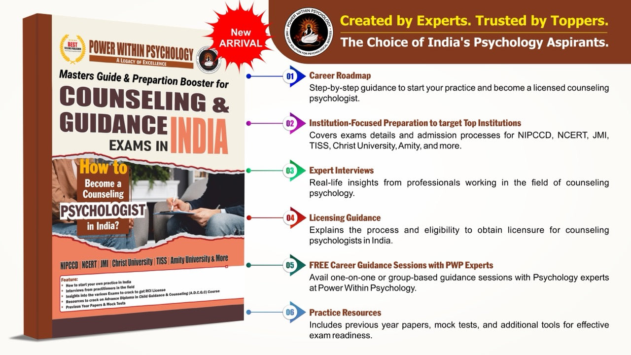Power Within Psychology presents a comprehensive preparation booster for students and professionals aiming to pursue a career in Counseling and Guidance Psychology in India. This expertly curated book is your trusted roadmap to crack the most sought-after courses such as: