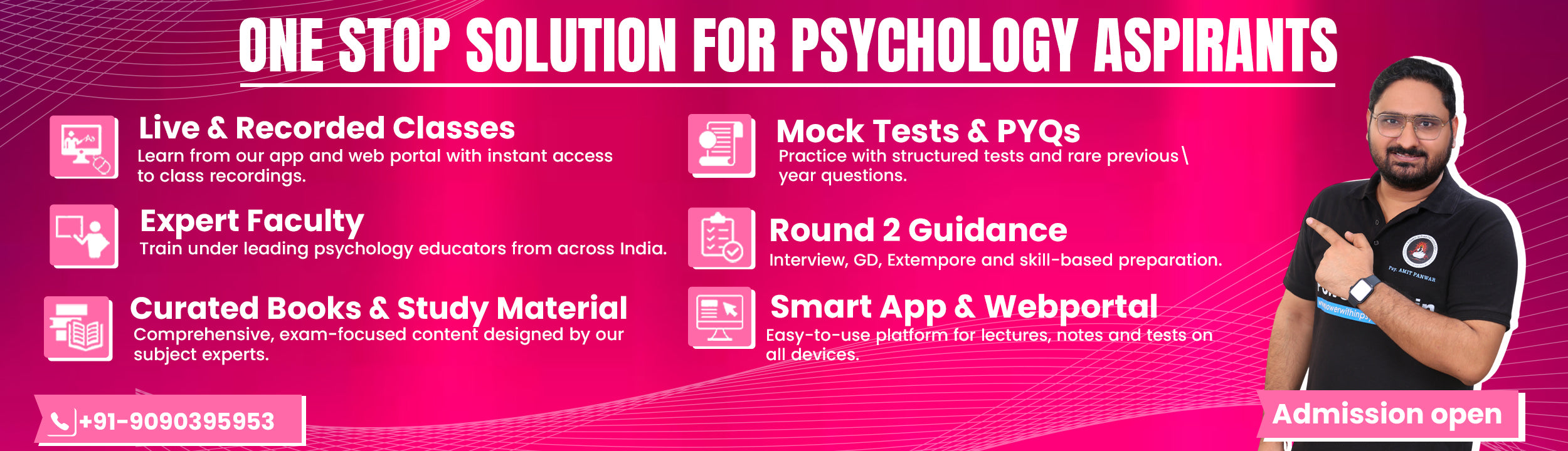 Classes are taught by expert faculties who have qualified UGC NET and JRF in Psychology. They will teach both Paper 1 and Paper 2 in live class format with recordings and doubt support available.